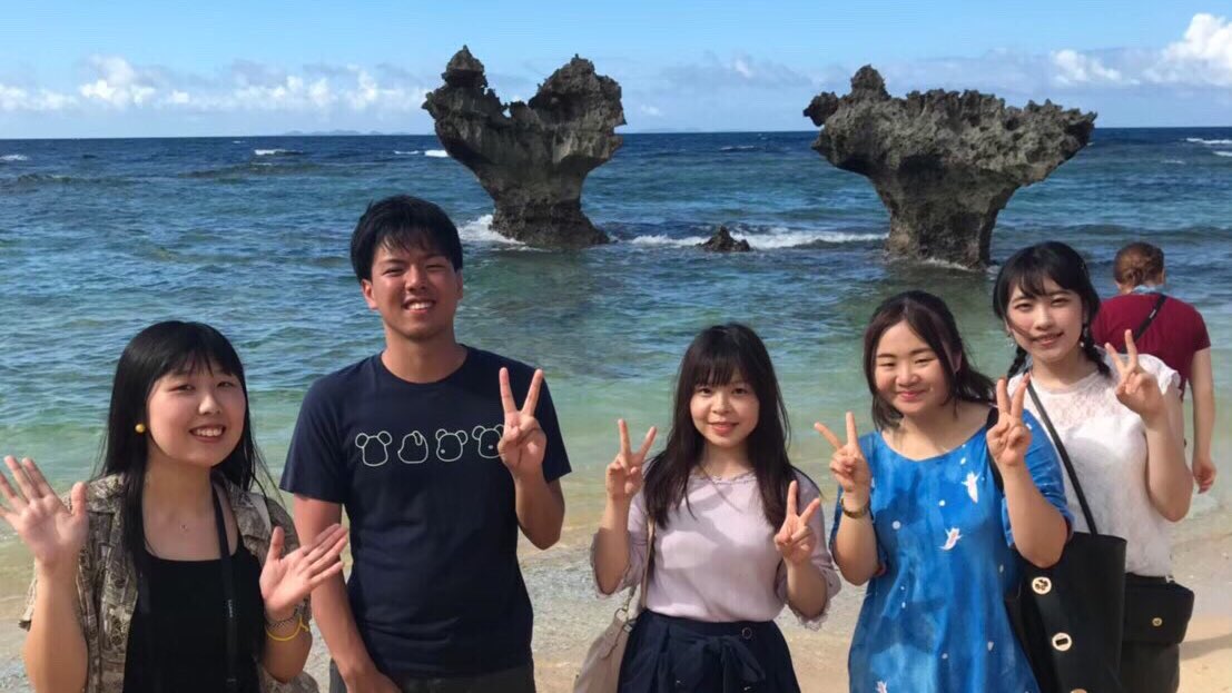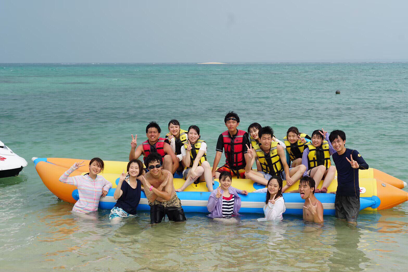 海に行ってバナナボートに乗ったり、美ら海水族館など観光地を巡ったりします!